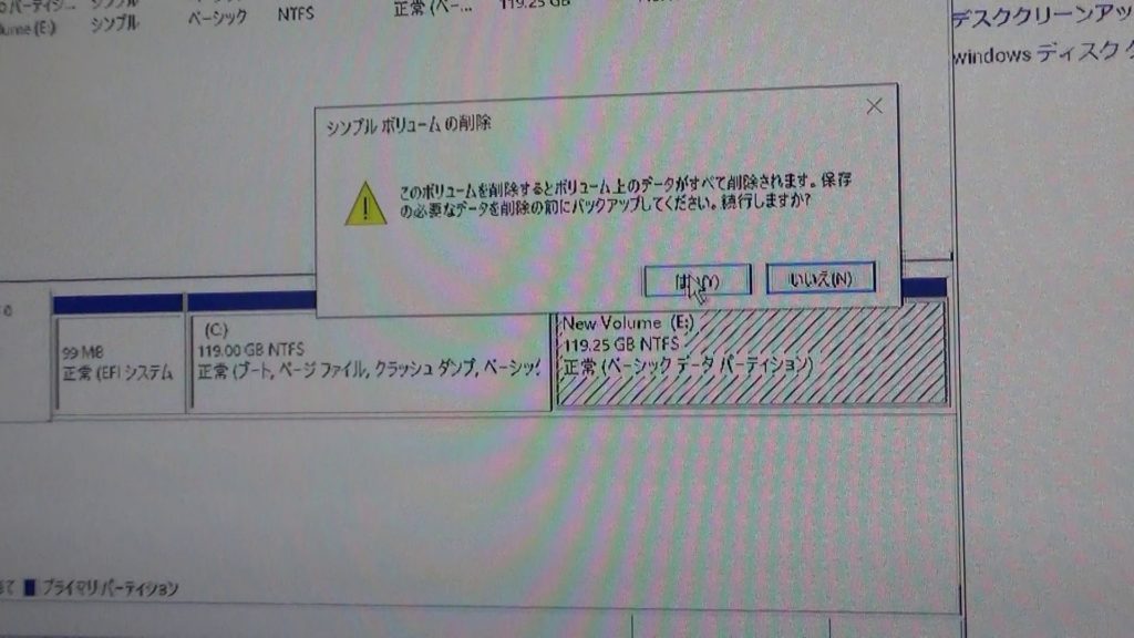 Eドライブのボリュームを削除します。…この表現で合ってるのかな?